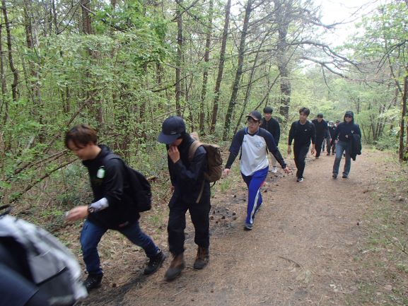 当初は班分けをしていましたが、いざ登り始めるとバラバラに・・・。学生ごとに体力が違うので仕方ない・・・。でもチームワークが・・・。